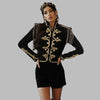 Damska czarna marynarka militarna ze złotymi haftami, vintage steampunk