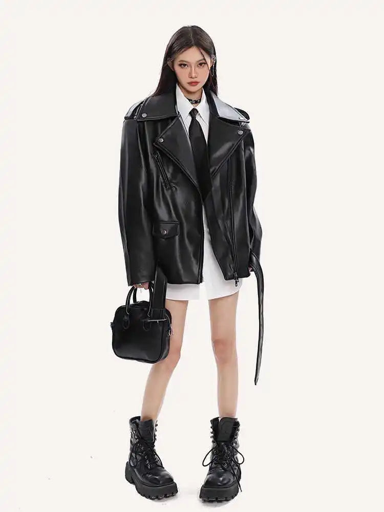 Naisten pitkä oversize goottityylinen musta vintage-nahkatakki Näytä vaihtoehdot
