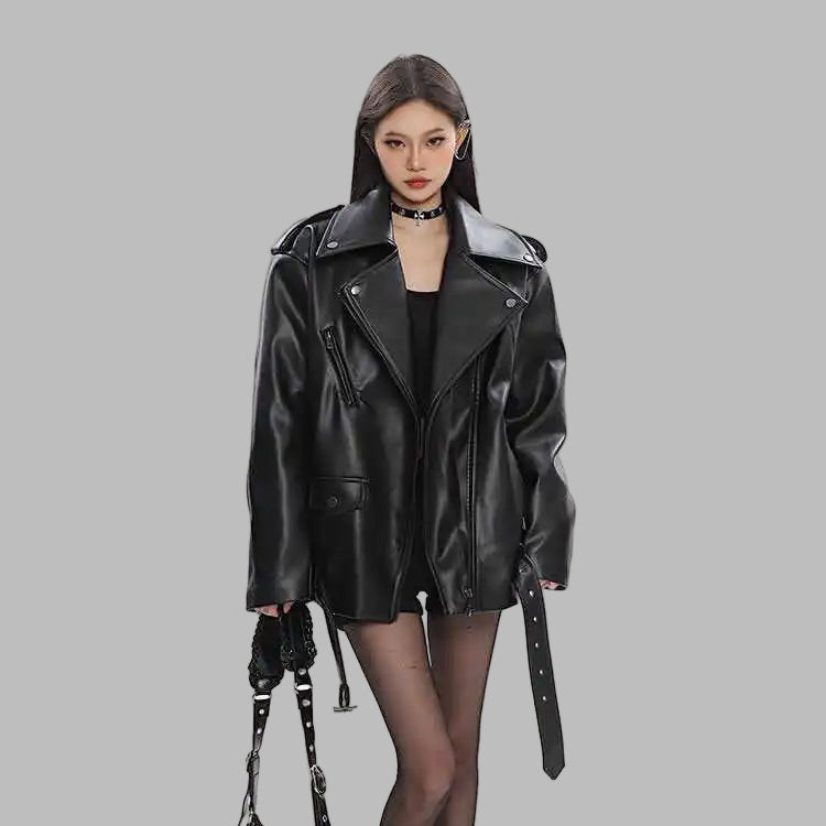 Naisten pitkä oversize goottityylinen musta vintage-nahkatakki