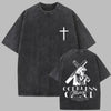 Oversize grunge rock ‑T-paita ristillä “God bless”, metallityyli, koko 3XL