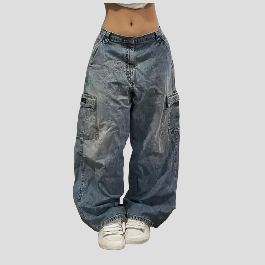 Oversize-henkiset harmaat vintage-grungehousut cargo-taskuilla