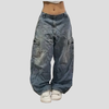 Oversize-henkiset harmaat grunge-housut, vintage, reisitaskuilla