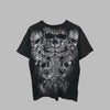 Oversize musta metallityylinen t-paita pääkallo- ja kirveskuviolla