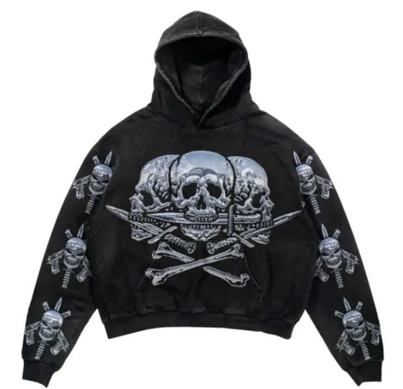 Pirate grunge-luomukuvioitu luurankohuppari Näytä vaihtoehdot