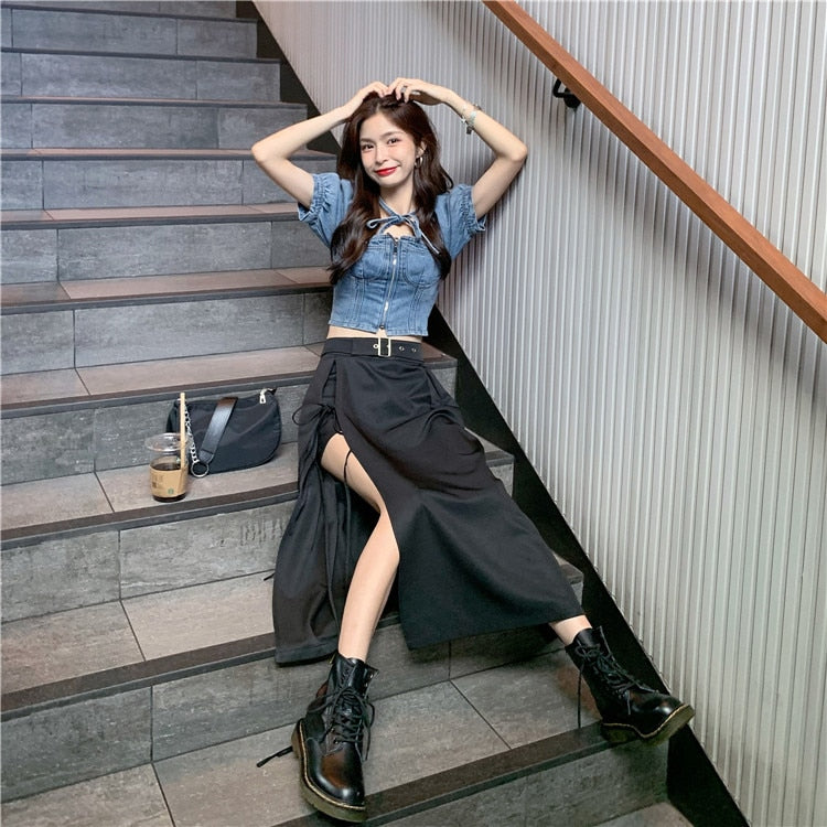 Pitkä musta goottihame
