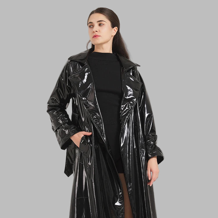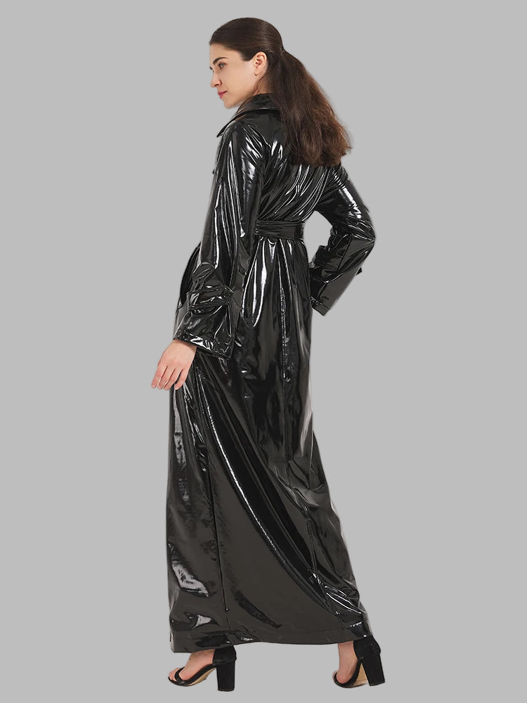 Pitkä musta kiiltävä nahkatakki, gootti, naisten Näytä vaihtoehdot