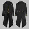 Pitkä musta steampunk-frakki kultaisilla napeilla