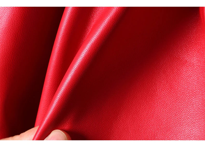 Pitkä punainen rock-tyylinen nahkatakki vyöllä Näytä vaihtoehdot