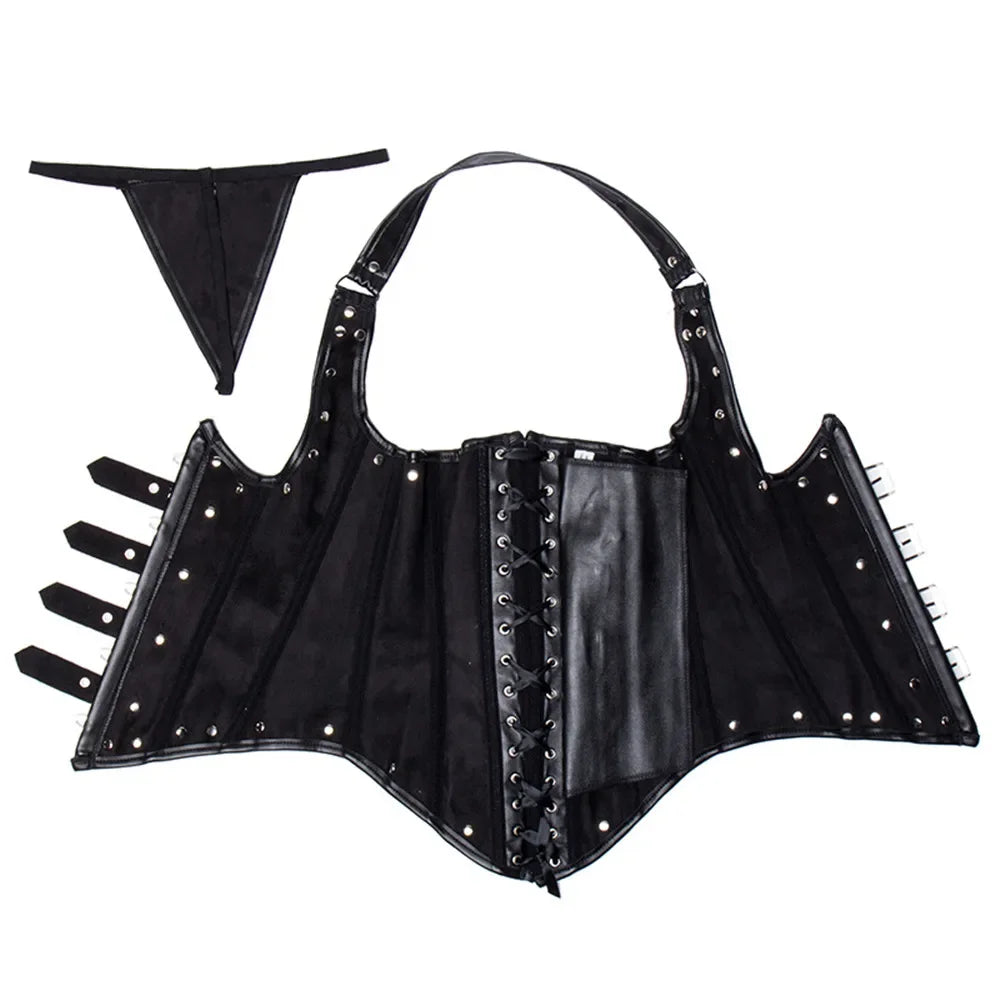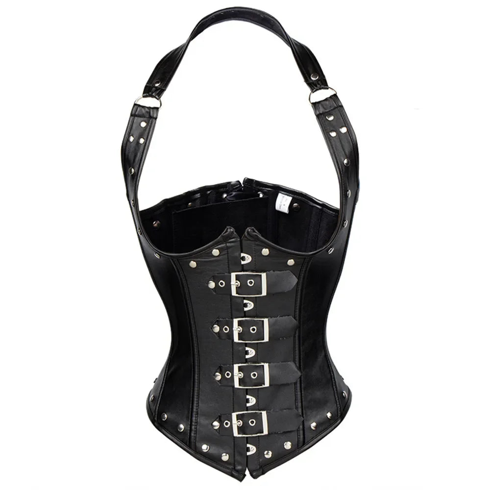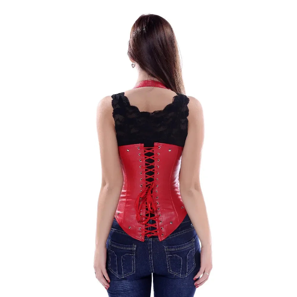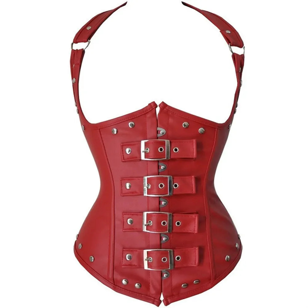 Punainen naisten ekonahkakorsetti soljilla, punk rock -tyyli