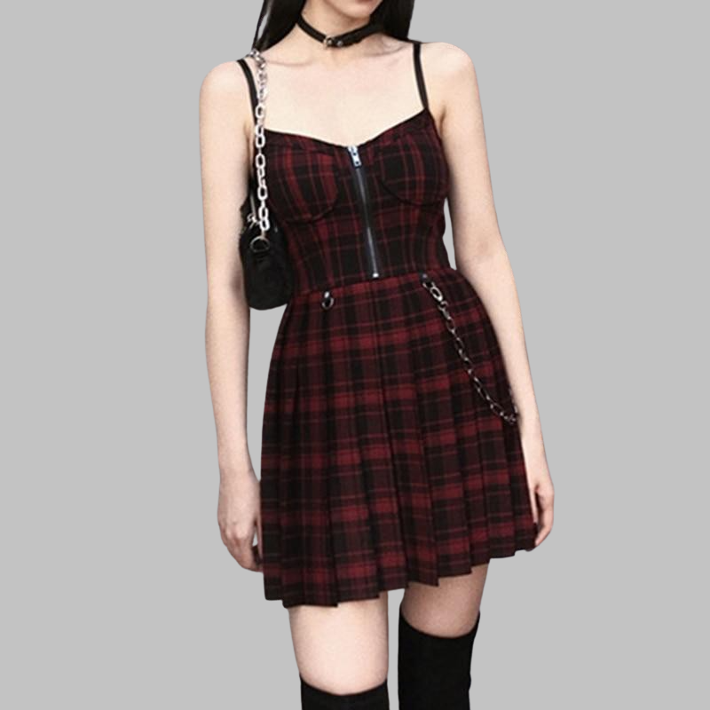 • Koriste: punainen skotlantilainen ruutukuvio, metalliketju