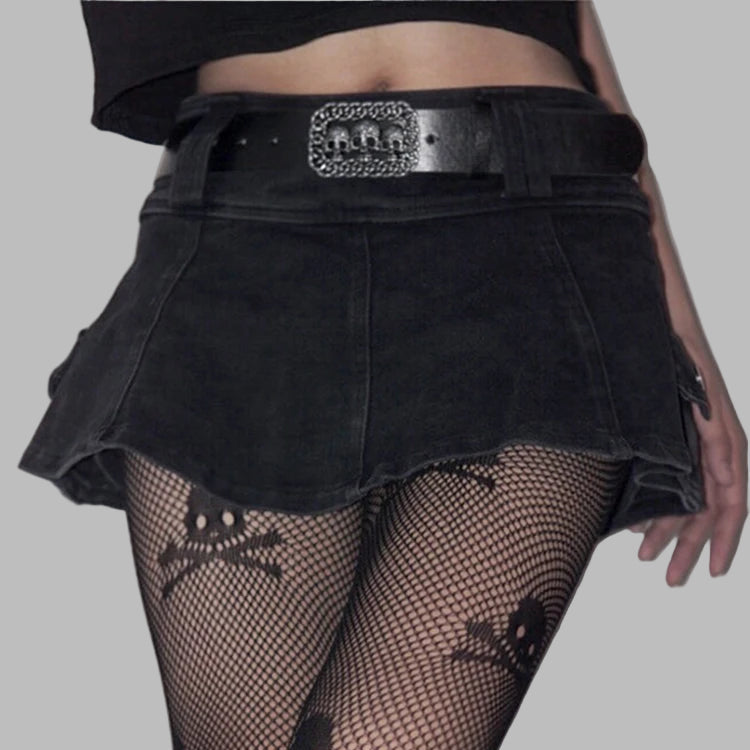 Punk-tyylinen musta farkku-cargohame metallivyöllä