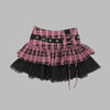 Punk rock -henkinen ruudullinen minihame pitsikoristeilla