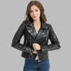 Punk-tyylinen nahkatakki tikatuilla paneeleilla