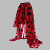 Rock pitkä epäsymmetrinen punainen hame mustilla kukilla 6XL