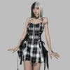 Rock punk -ruudullinen henkselimekko nyörityksellä