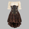 Ruskea steampunk-mekko korsetilla, ketjuilla ja pitsihameella, koko 6XL