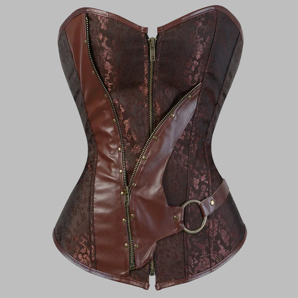 Ruskean brokadin steampunk-korsetti vetoketjulla ja rengashihnalla 6XL