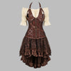 Steampunk-rusettikoristeinen ruskean pitsinen henkseleillä varustettu korsettimekko, koko 6XL