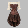 Steampunk-rusettikorsetti pitsihameella ja pussihihoilla, ruskea 6XL