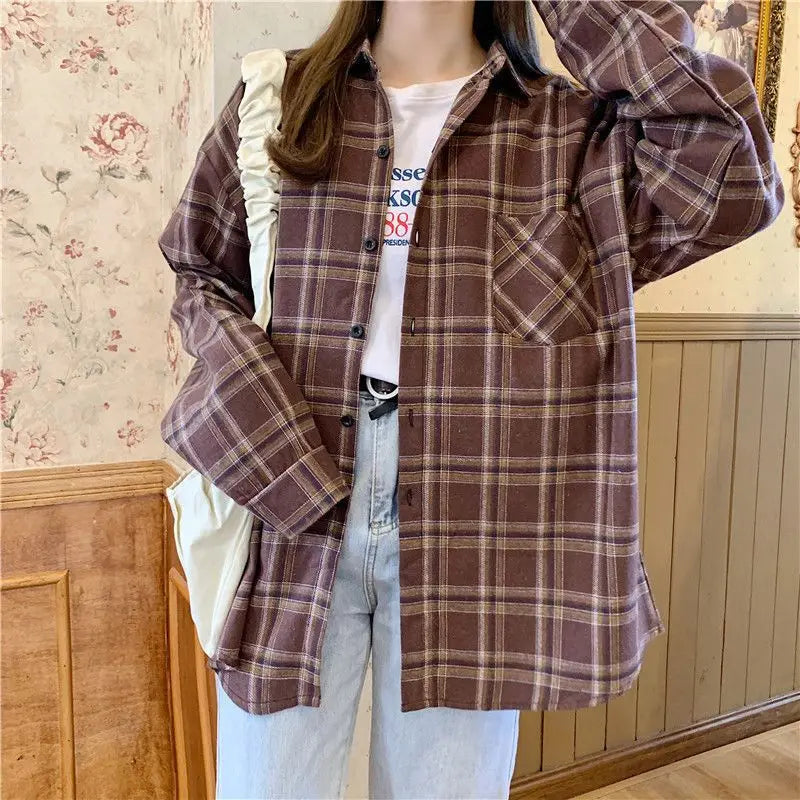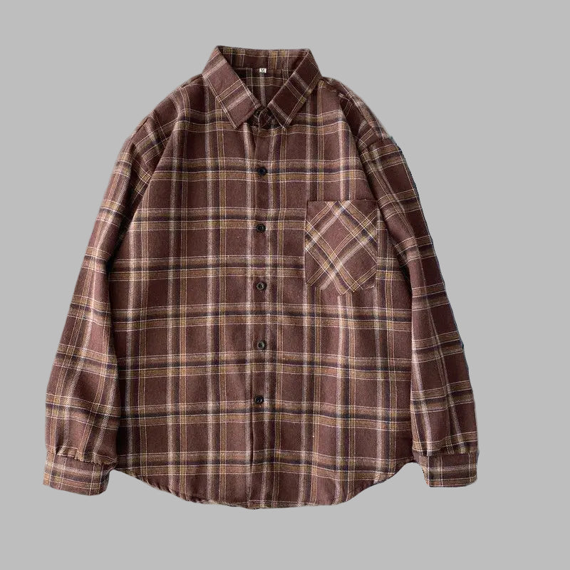 Ruskearuudullinen punk rock -flanellipaita rintataskulla Näytä vaihtoehdot