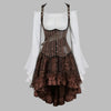 Steampunk-setti: ruskea raidallinen korsettimekko pitsihameella, koko 6XL