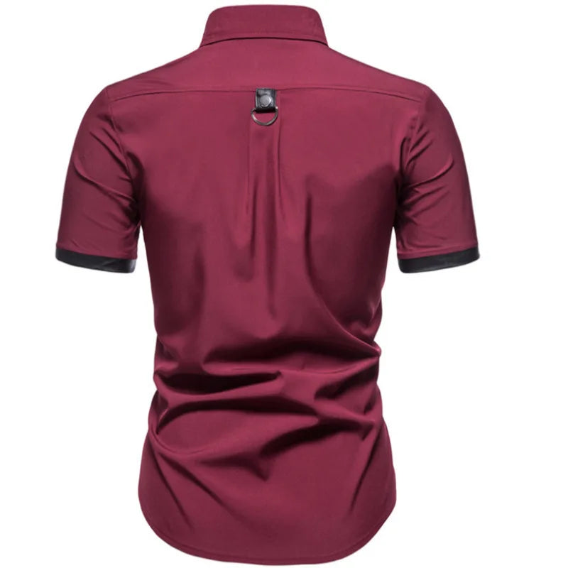 Steampunk-paita nahkahihnoilla, viininpunainen, lyhythihainen