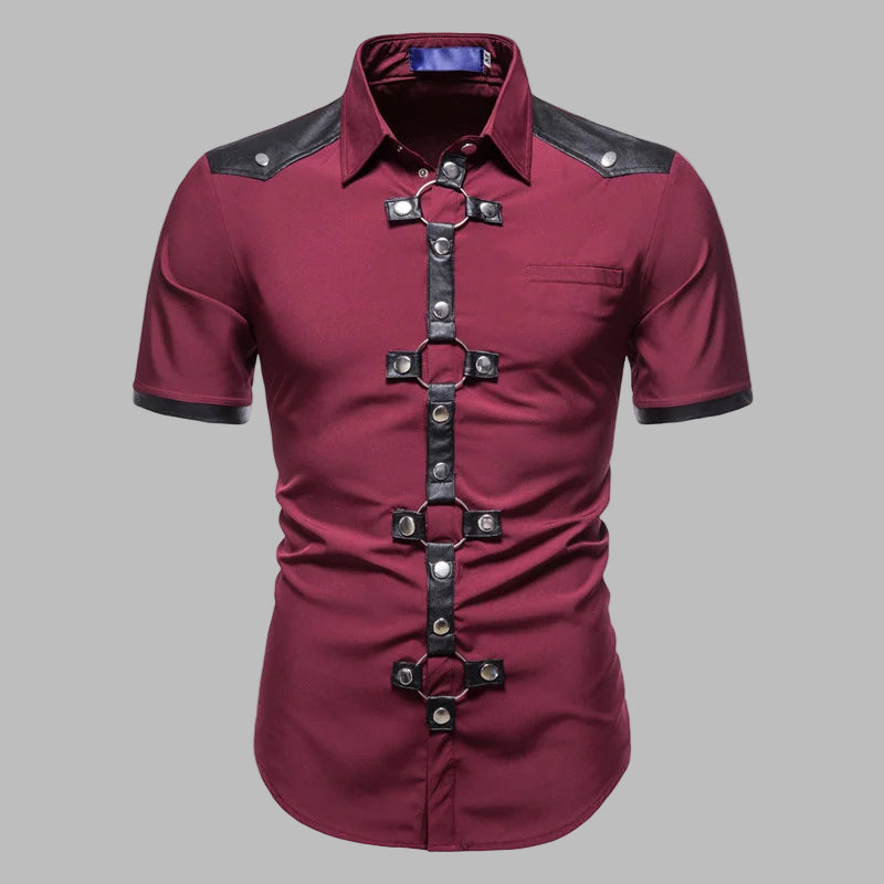 Steampunk-paita nahkahihnoilla, viininpunainen, lyhythihainen Näytä vaihtoehdot