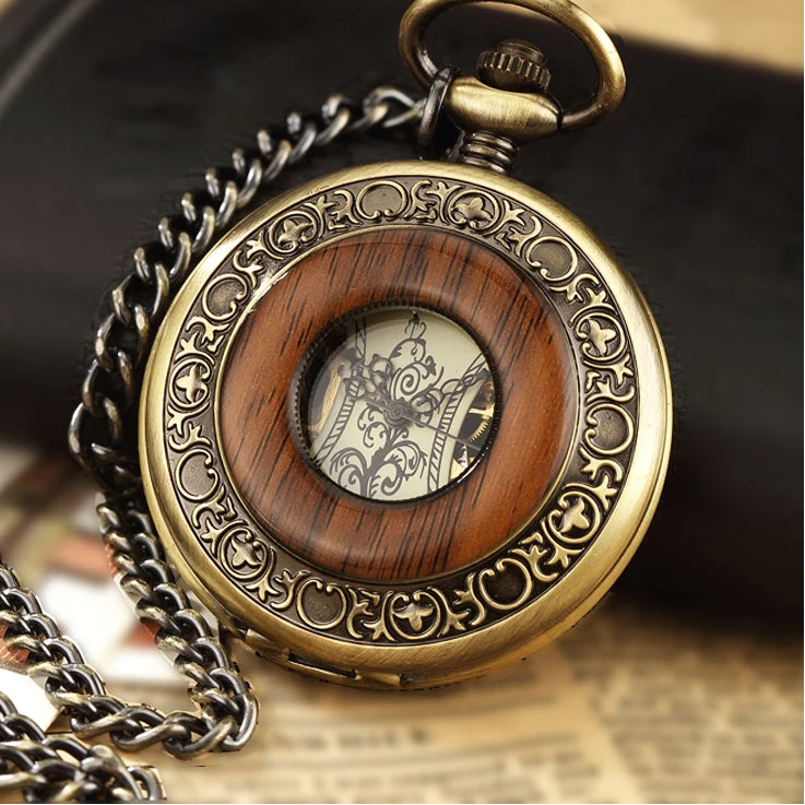Steampunk-rannekello puukoristeella, ruskea