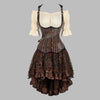 Steampunk-rusettikorsettimekko, raidallinen yläosa ja pitsihame, ruskea 6XL