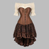 Steampunk-rusettikorsetti, paita ja epäsymmetrinen ruskea hame, koko 6XL