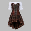 Steampunk-ruskea mekko kirjailulla korsetilla ja pussihihoilla 6XL