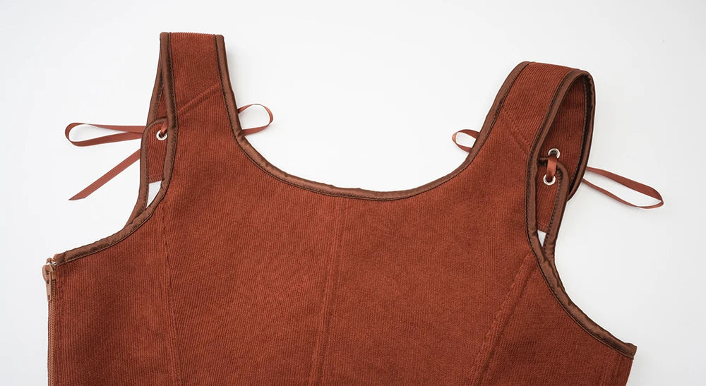 Steampunk-ruskea nyöritetty toppi solmittavilla olkaimilla