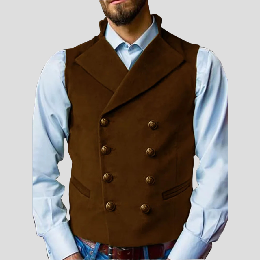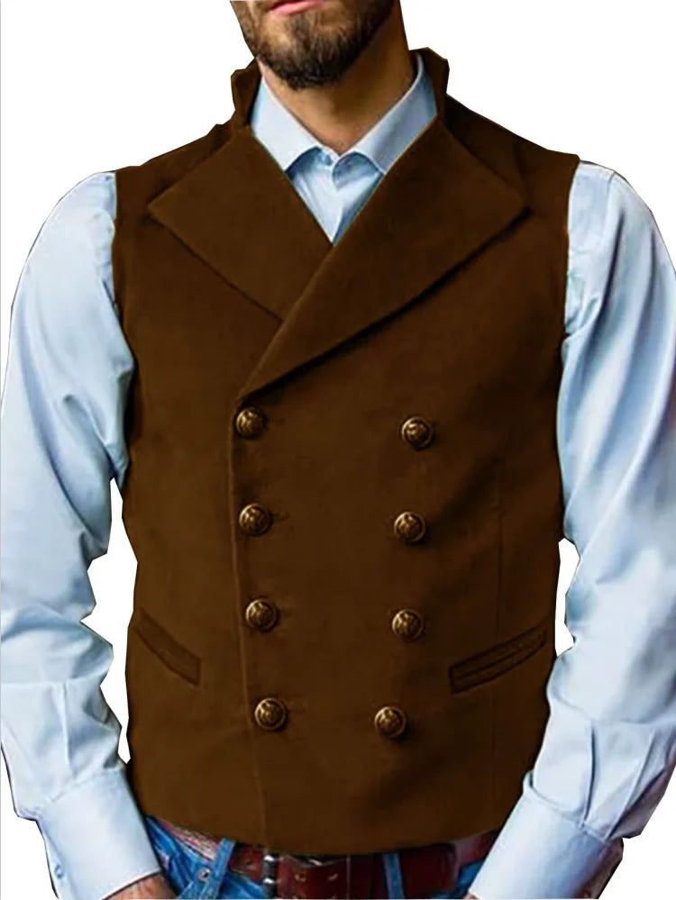 Steampunk-ruskeanvärinen klassinen kaksirivinen liivi napeilla