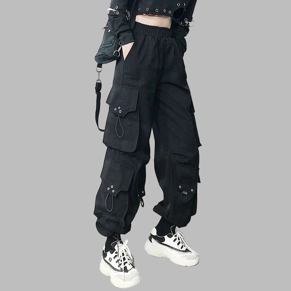 Taktiset mustat punk-housut ketjutaskuilla, grunge-tyyli Näytä vaihtoehdot