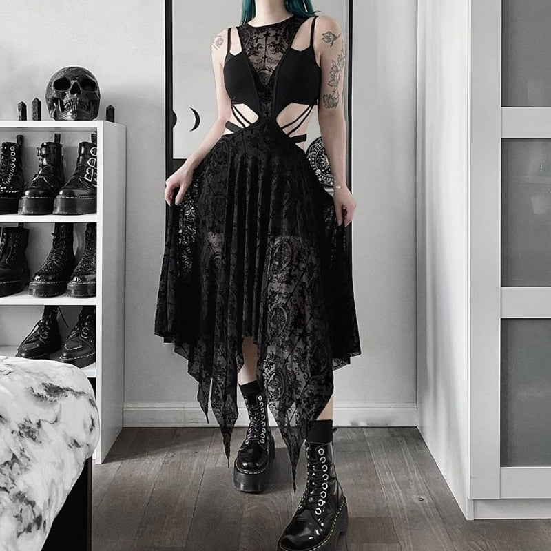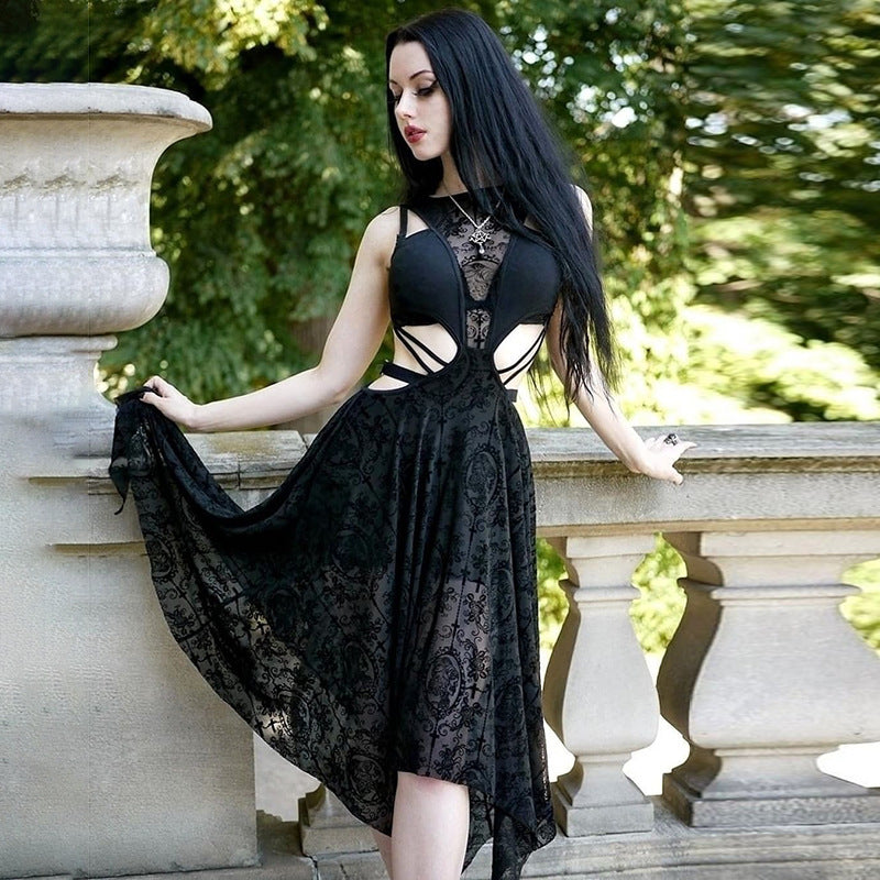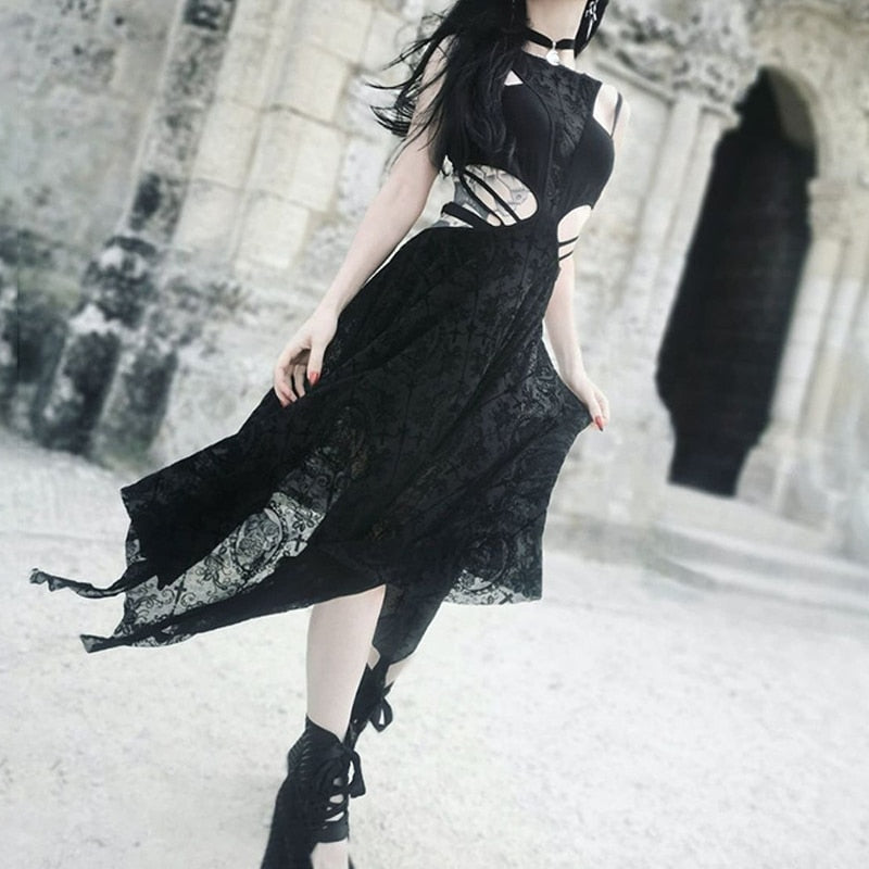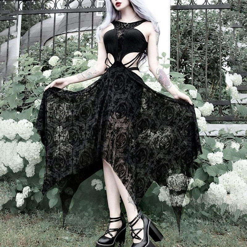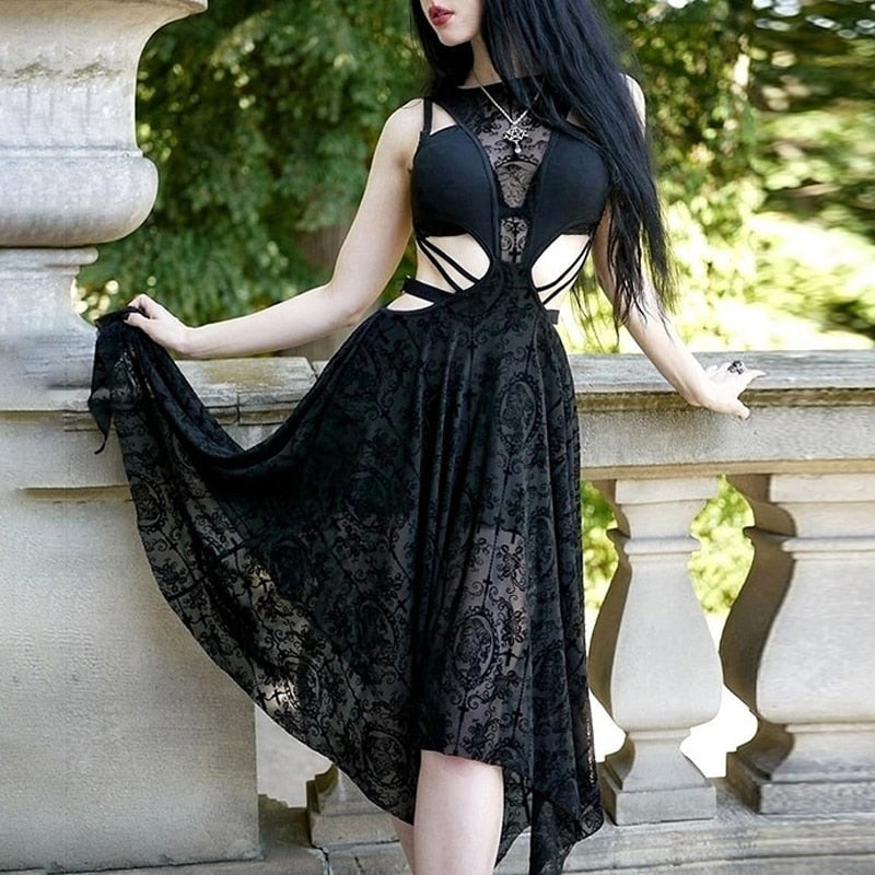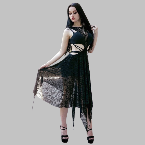 • Kesämukavuus: Täydellinen lämpimille kesäpäiville, pohkeen puoliväliin ulottuva mekko antaa sinun tuntea olosi rennoksi säilyttäen goottilaisen eleganssin.