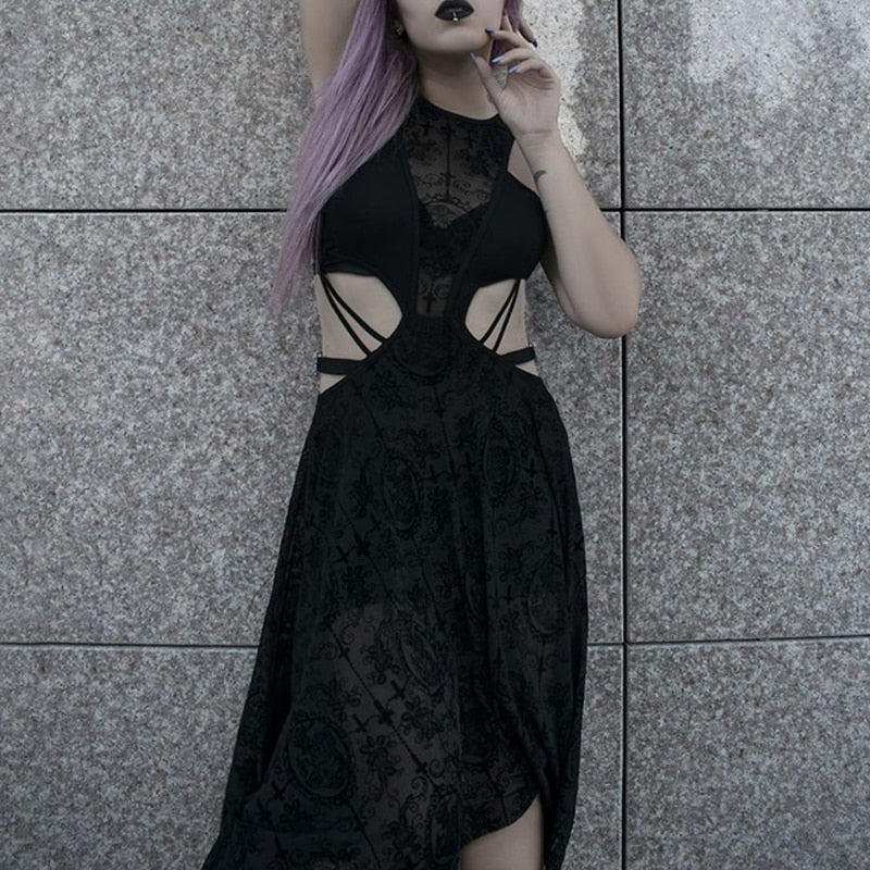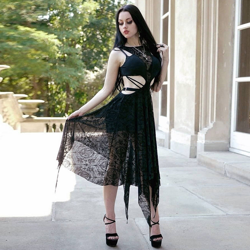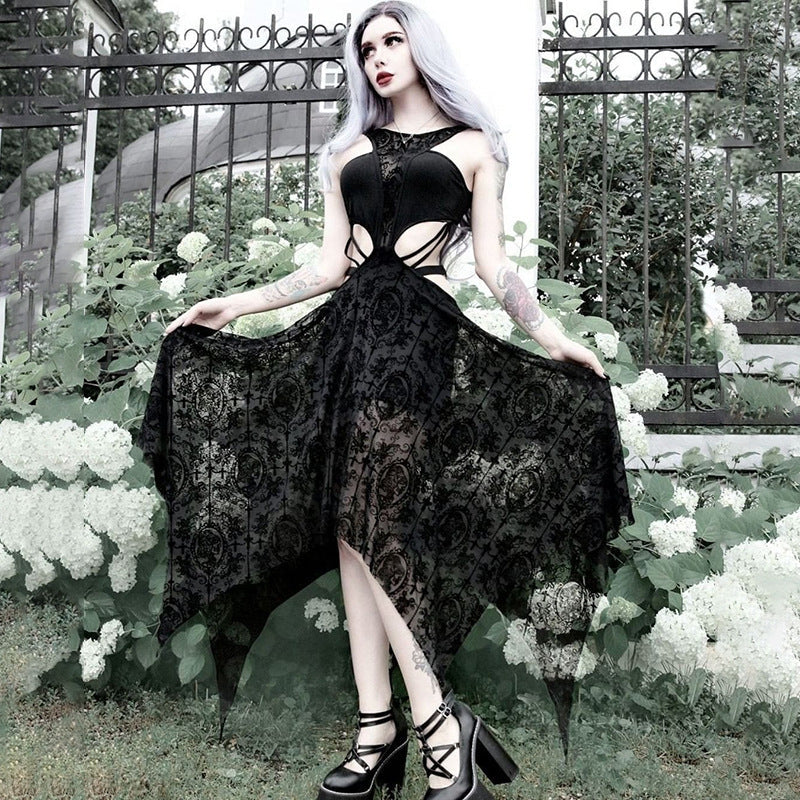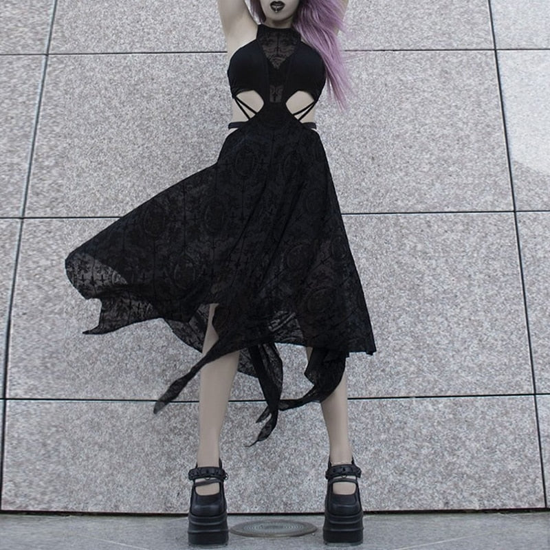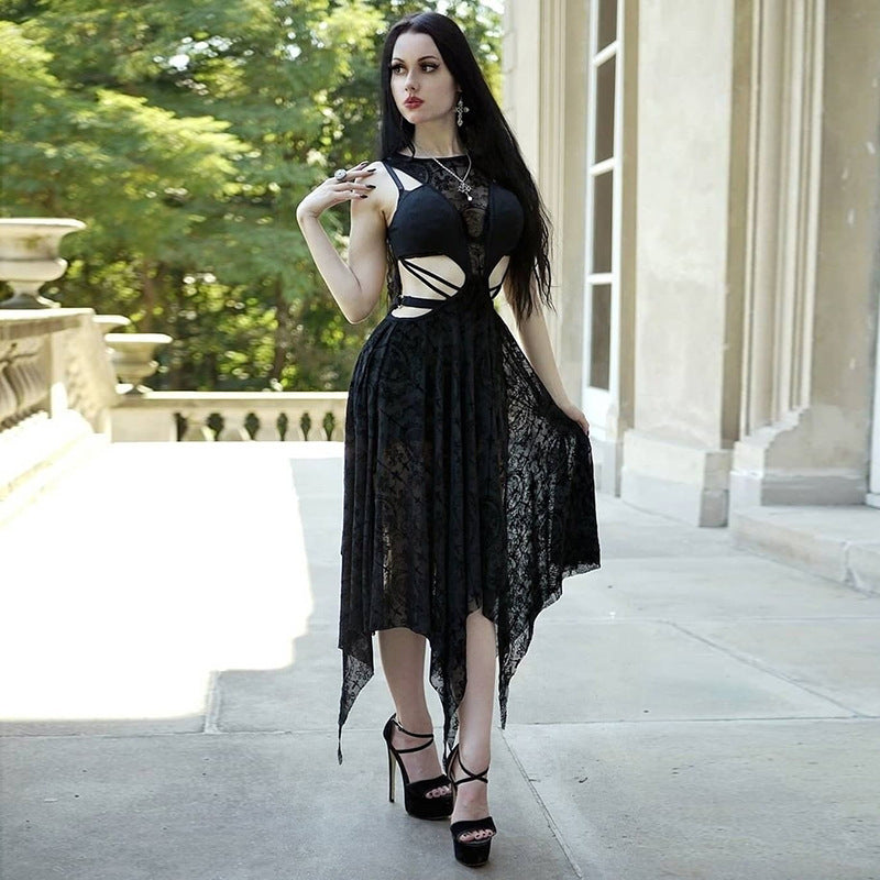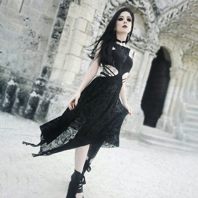 • Kesämukavuus: Täydellinen lämpimille kesäpäiville, pohkeen puoliväliin ulottuva mekko antaa sinun tuntea olosi rennoksi säilyttäen goottilaisen eleganssin.