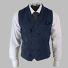 Tummansininen kaksirivinen steampunk-liivi perinteisillä metalliyksityiskohdilla