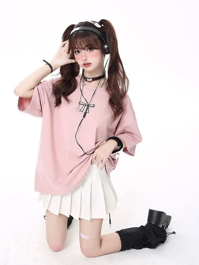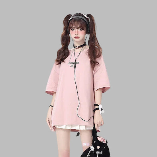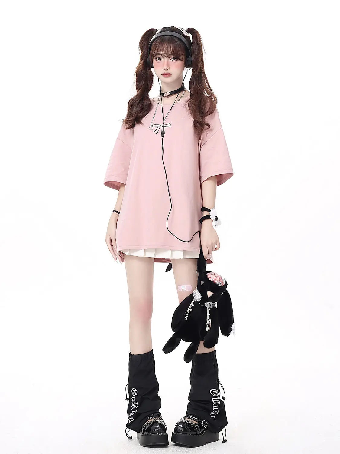 Vaaleanpunainen Jirai Kei -huppari nyörityksellä selässä