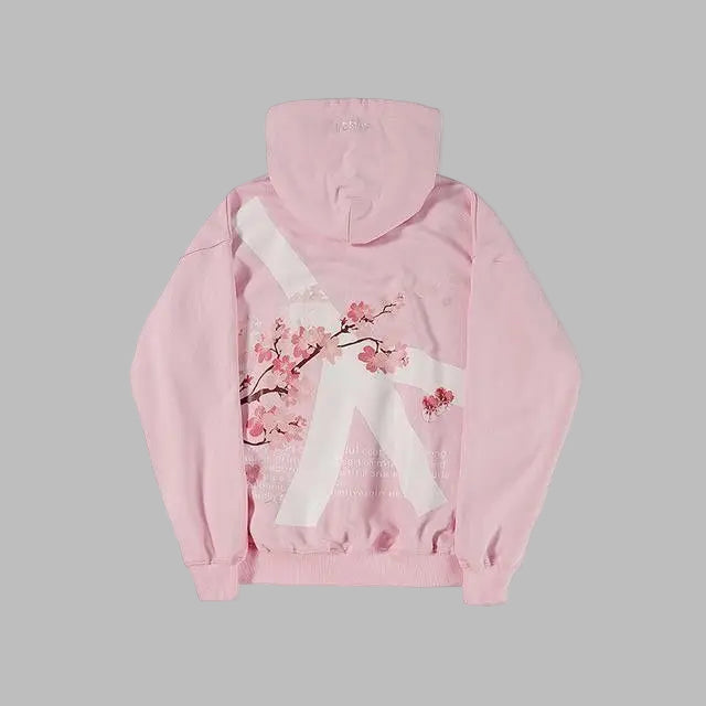 Vaaleanpunainen Jirai Kei -huppari valkoisilla kirsikankukilla