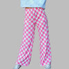 Pinkki-valkoinen ruudullinen grunge-tyylinen punk-housut, leveä malli