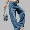 Väljät siniset baggy rock -farkut, wide leg