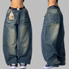 Väljät vintage-siniset grunge-farkut kuluneella pesulla
