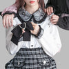 Valkoinen goottilainen pusero pitsikauluksella ja suurella rusetilla, Lolita Jirai Kei -tyyli