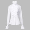 Valkoinen steampunk-pusero röyhelökauluksella ja pussihihoilla