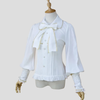 Valkoinen steampunk-pusero rusetilla ja pitsimanseteilla